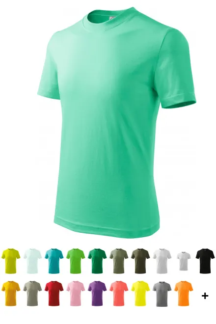 100% Baumwolle • 160 g/m2 (GSM) • 9 Farben • Größen 110 cm / 4 Jahre bis 158 cm / 12 Jahre • Familienkonzept - abstimmende Damen- und Herrenversion verfügbar
