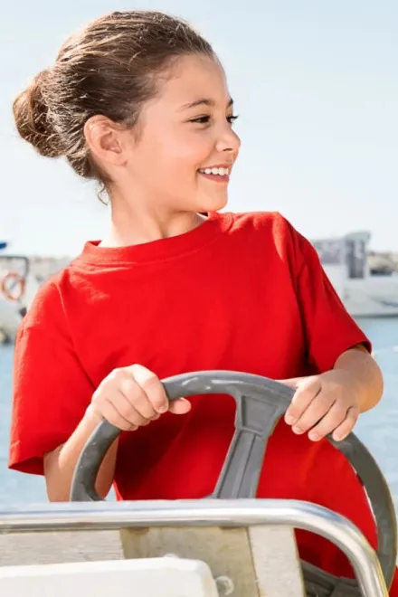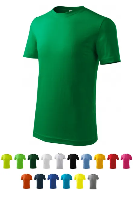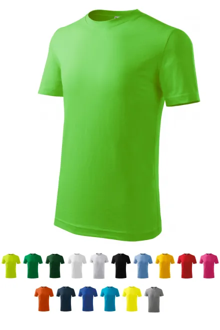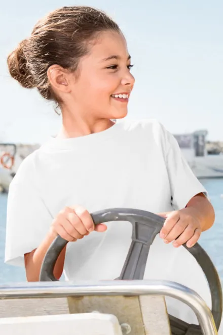 100% Baumwolle • 135 g/m2 (GSM) • 12 Farben • Größen 110 cm / 4 Jahre bis 158 cm / 12 Jahre • Familienkonzept - abstimmende Damen- und Herrenversion verfügbar