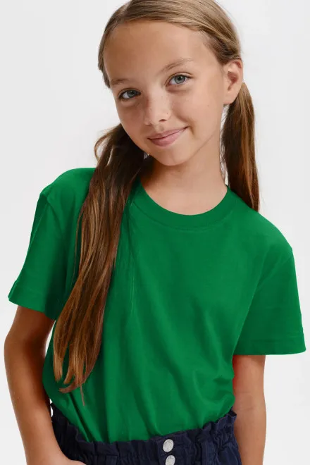 100% Baumwolle • 160 g/m2 (GSM) • 29 Farben • Größen 110 cm / 4 Jahre bis 158 cm / 12 Jahre • Familienkonzept - abstimmende Damen- und Herrenversion verfügbar